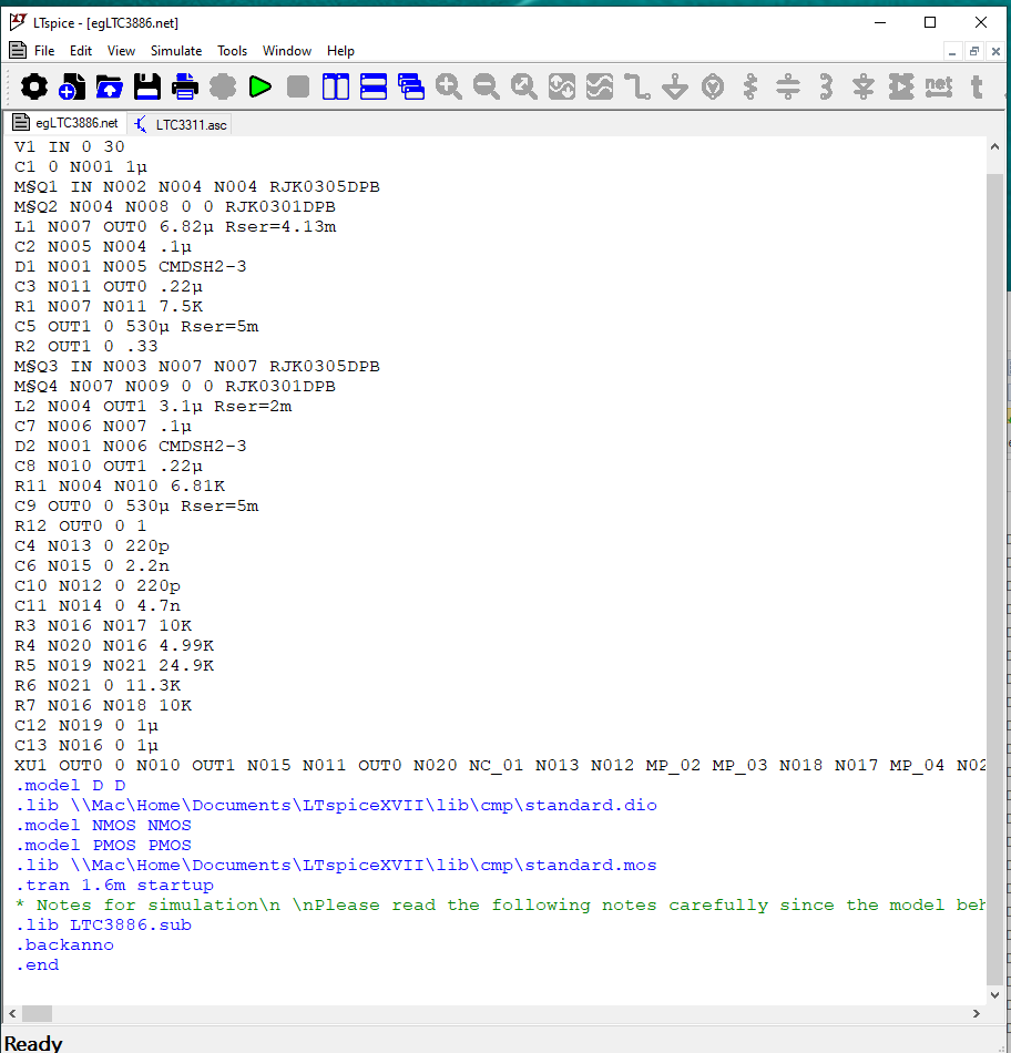 You can open netlists generated either by hand or from other schematic capture programs. These files usually have a filename extension of ".cir", but ".net" and ".sp" are understood. The text editor used for netlist files colorizes SPICE syntax for readability. The menu command Tools > Color Preferences can be used to adjust the colors used in the editor. Unicode is supported for netlists, as explained in General Structure and Conventions.