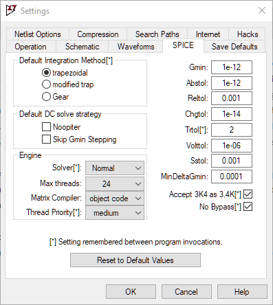 This pane allows you to define the various defaults for LTspice. These defaults can be overridden in any simulation by specifying the options in a .option statement in that simulation. Usually you can leave these options as they are.